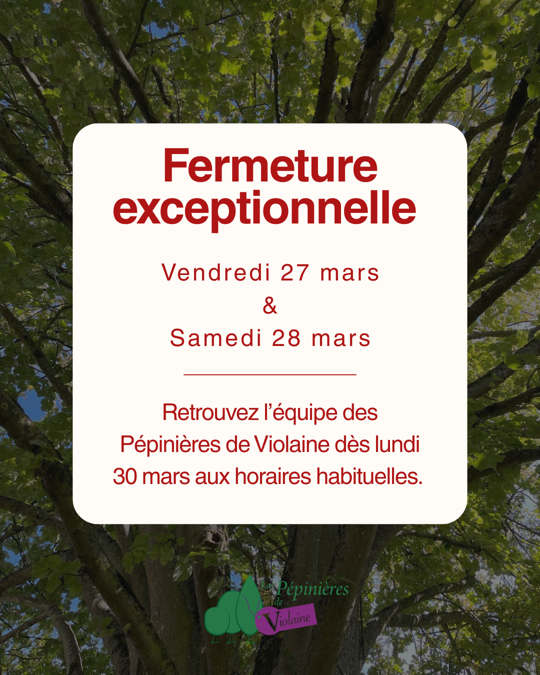 Les Pépinières seront exceptionnellement fermées ce vendredi 27 et samedi 28 mars.